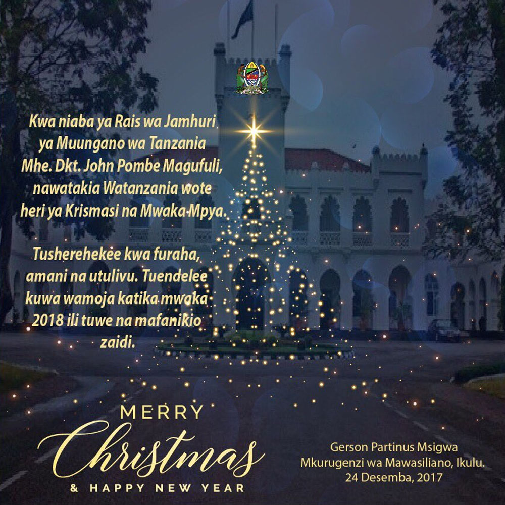 Magufuli ametoa salamu zake hizo kupitia kwa Mkurugenzi wa Mawasiliano Ikulu, Gerson Msigwa ambapo rais amewataka Watanzania kusherehekea sikukuu hizo kwa utulivu na amani na kuwataka Watanzania mwaka 2018 kuwa pamoja ili nchi iweze kufanikiwa zaidi na zaidi